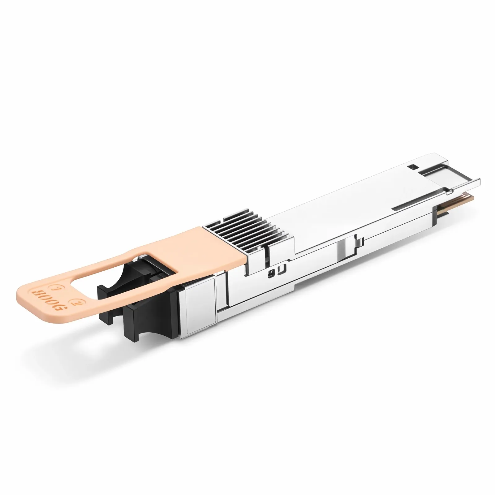 The 800G QSFP-DD 2x SR4 optical transceiver module is designed for 800GBASE Ethernet throughput up to 50m link lengths over OM4 multimode fiber (MMF) using a wavelength of 850nm via dual MTP/MPO-12 APC connectors. This transceiver is compliant with IEEE 802.3df, IEEE 802.3ck QSFP-DD HW Rev 6.2, and CMIS Rev 4.0 standards. The built-in digital diagnostics monitoring (DDM) allows access to real-time operating parameters. This module has 2x MPO-12 connectors, supports 2x 400G SR4 breakout applications. Featured with low latency, low power, and reliability, the product is suitable for 800G Ethernet, Data Center, high-performance computing networks, enterprise core and distribution layers, and service provider applications.